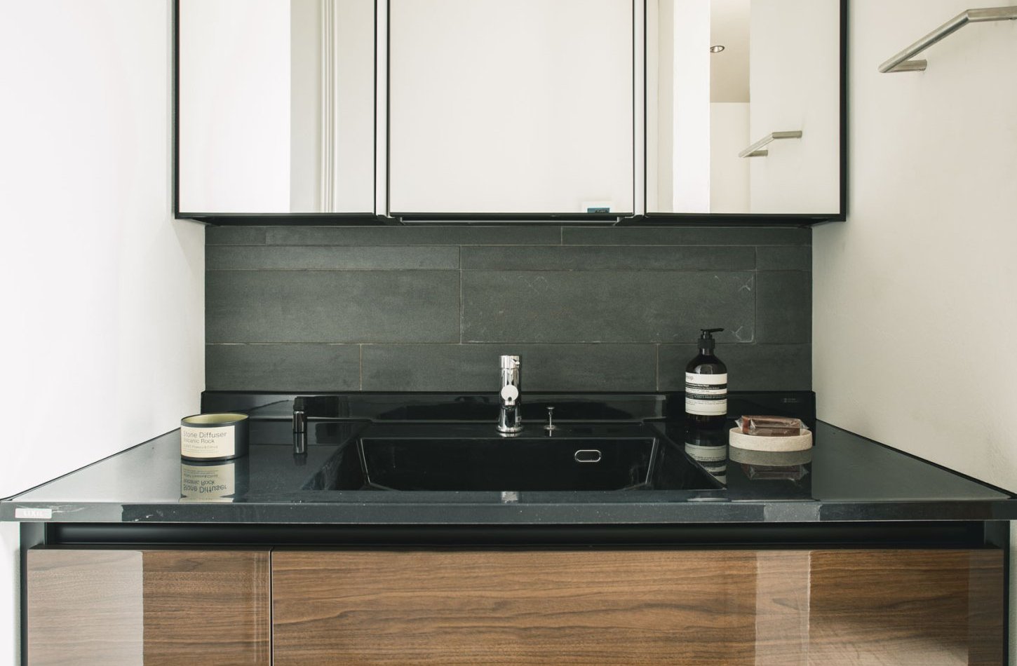 外壁には、左官仕上げのオメガアクロフレックスを採用。 「Stone Age」の上品なトーンは街並みに自然となじみ、やわらかな印象を与えます。 職人の手による独特の風合いが、家そのものに深みと表情を加えます。