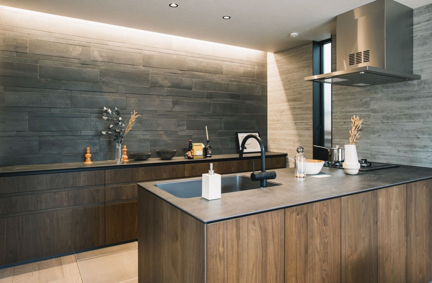 玄関ホールからLDKに入ると視線の先に、LIXILのリシェルキッチンが――。 直線的なフォルムと上質な素材感が、空間全体に美しい存在感を放ちます。 料理のしやすさと意匠性、どちらも妥協しない、家の主役にふさわしい佇まいです。