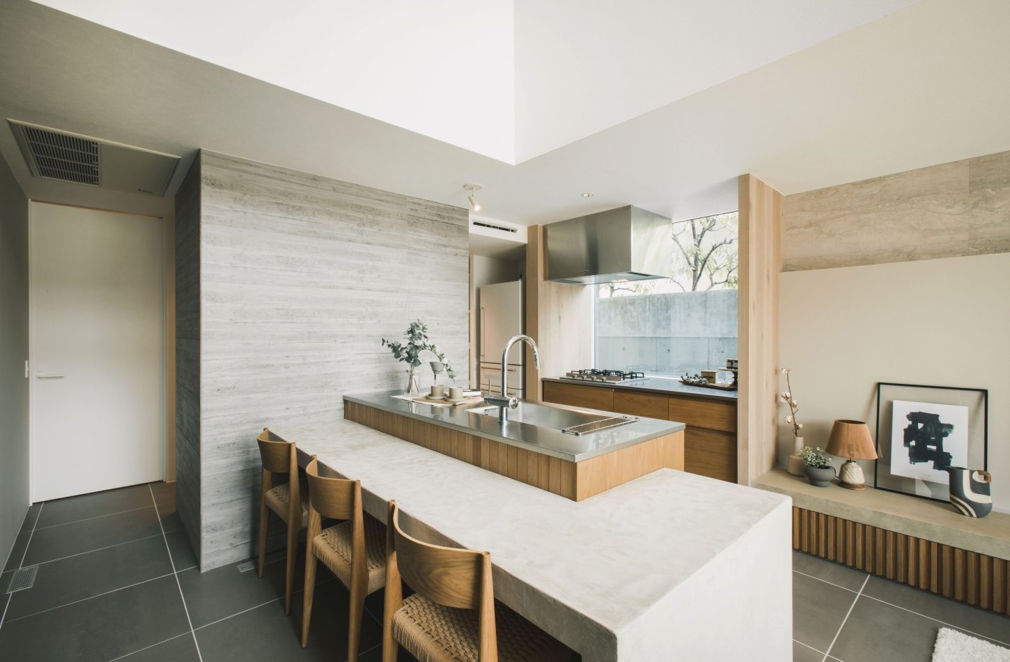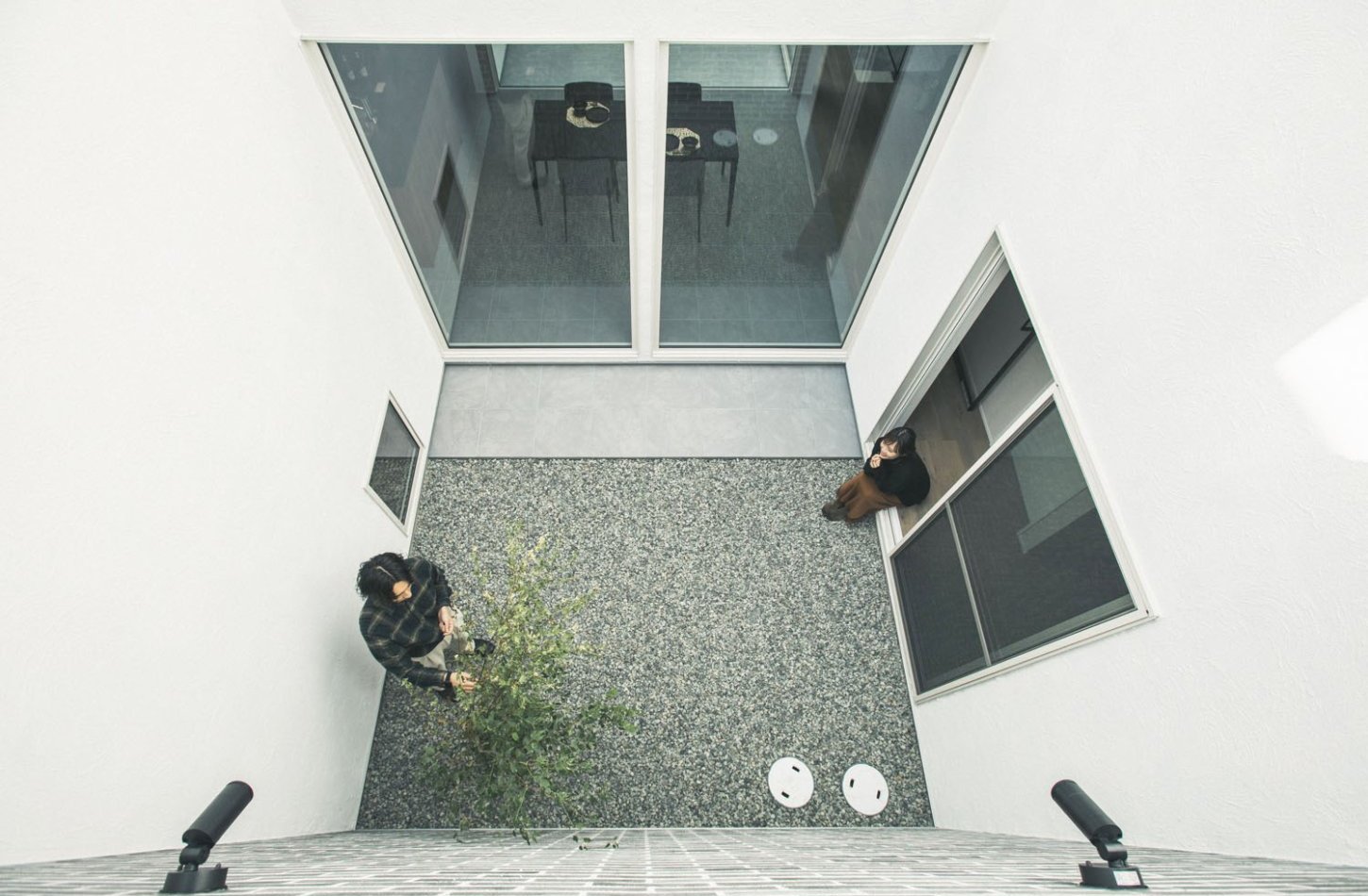 外からの視線をやさしく遮りながら、光と風を招く中庭。 住まいの内側に設けることで、室内にいながら自然を感じられ、穏やかな時間を過ごすことができます。