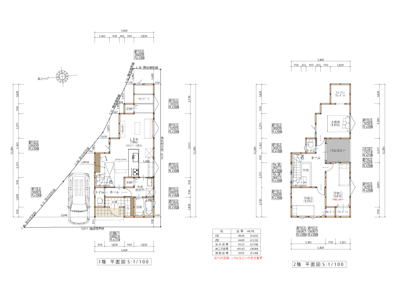 玄関にはシューズクローク、各階には収納スペースが要所に配置されており、物の居場所がしっかり確保されています。2階は主寝室+ウォークインクローゼットに加えて洋室2室があり、子ども部屋や書斎などライフスタイルに合わせて柔軟に使えます。1階で生活が完結しつつ、2階の居室が将来まで対応できるバランスの良いプランです。